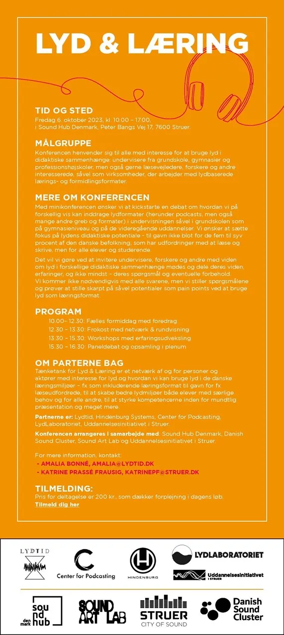 For mere information om Lyd & Læring netværksdagen, kontakt